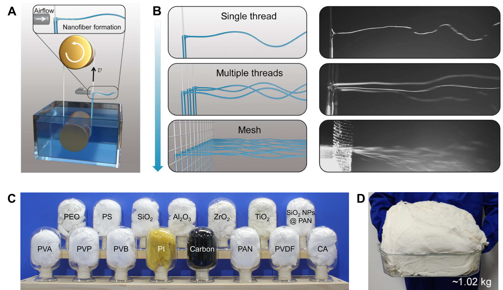 上述研究成果以“通过卡门涡旋气纺丝法实现公斤级纳米纤维的高通量制备”(High-throughput production of kilogram-scale nanofibers by Kármán vortex solution blow-spinning)为题,于3月16日在线发表在《科学进展》(Science Advances)上,并申请了发明专利。
