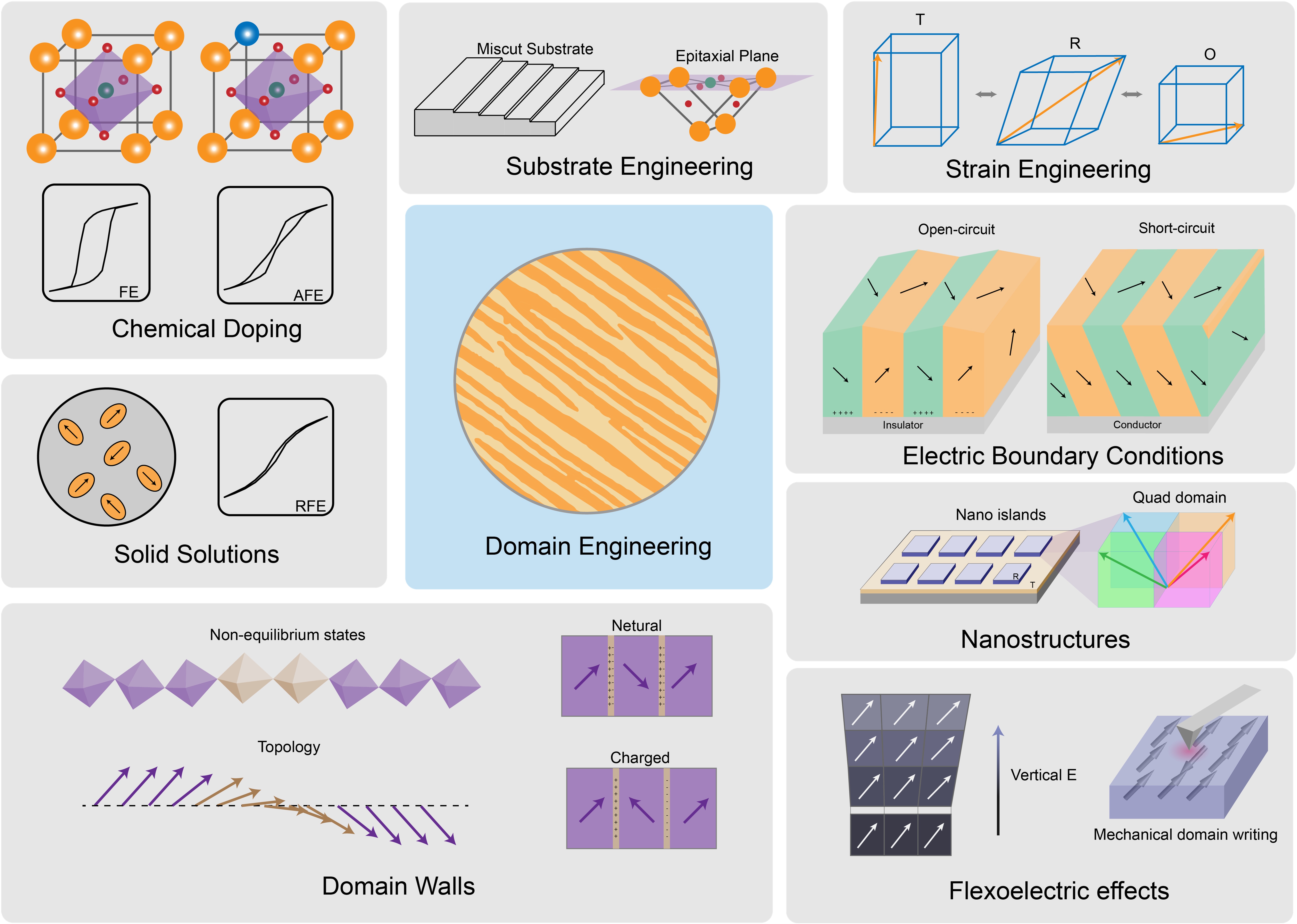 图为铁酸铋中基于畴工程的主要调控手段
