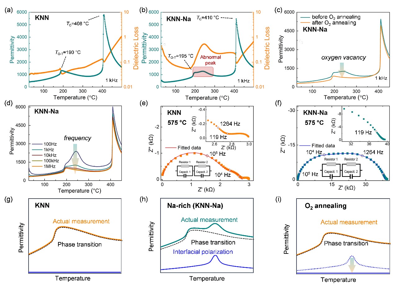 图2. 缺陷调控下的无铅压电陶瓷KNN异常介电行为及产生机理