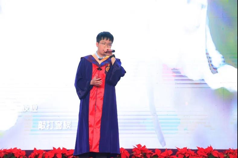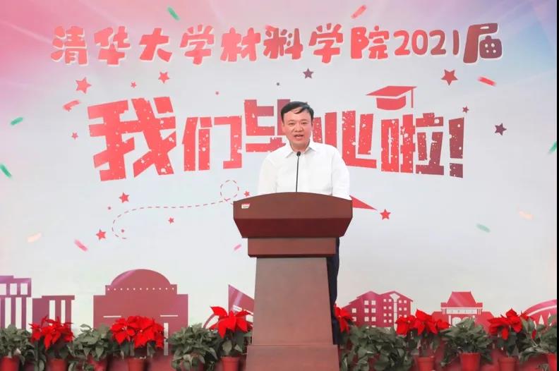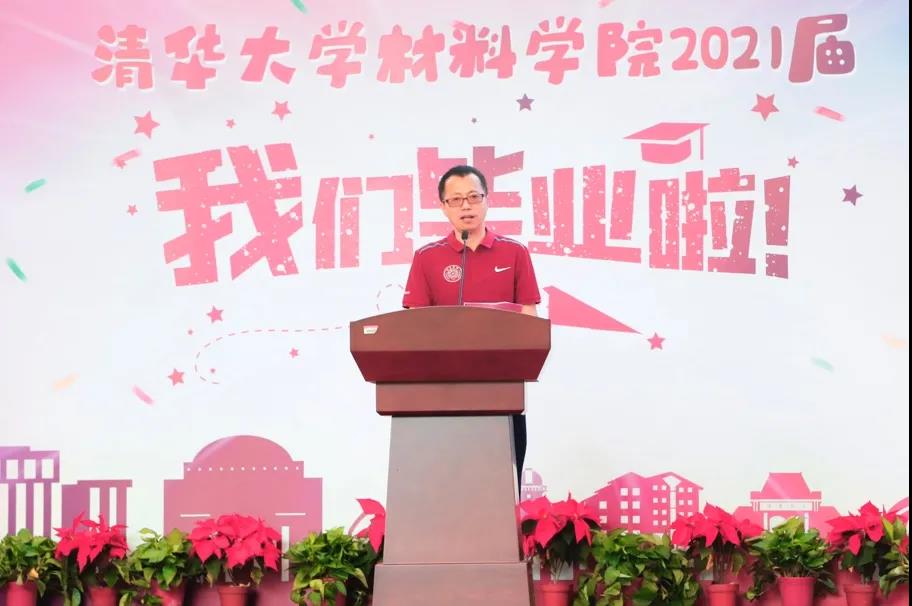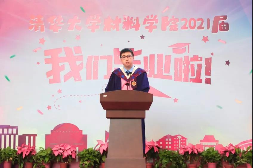 2021届毕业生代表孙一鸣同学代表全体毕业生发表感言。首先他感谢公司和公司为同学们搭建了足够大的舞台,托举见证每一位同学的茁壮成长;感谢亦师亦友的导师传授为人为学的道理,师生之谊,山高水长,永志难忘;感谢始终坚持、不断淬炼的自己,内化为一生的财富。随后,孙一鸣表示全体毕业生也将传承爱国奉献、追求卓越的清华精神,牢记清华材料人的初心使命,努力成长为堪当民族复兴重任的时代新人!