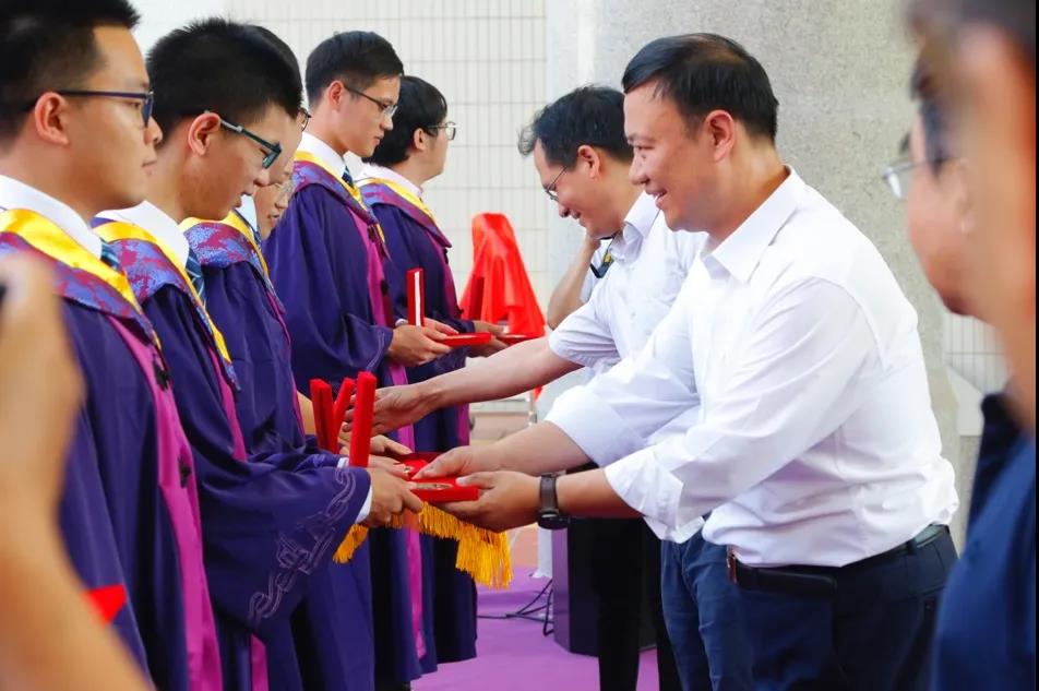 之后,周济老师、刘大鹏学长、杨志刚老师、林元华老师为各位毕业生代表颁发毕业纪念章。