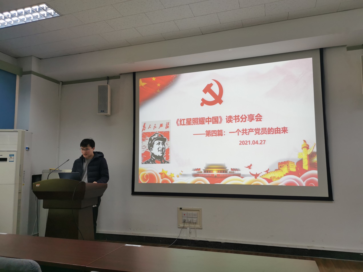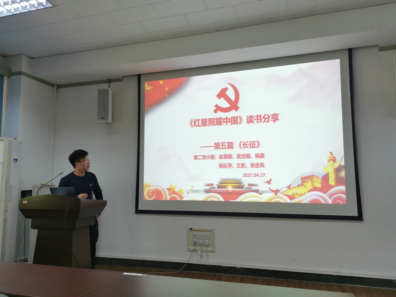 之后王乾同志分享了阅读《红星照耀中国》第五篇“长征”的感想,中国共产党及其领导的工农红军,在极端困苦绝望的逆境中奋起,不畏强敌,不懈斗争,由涓涓细流汇成磅礴大海,取得了新民主主义革命的胜利。事实证明,没有任何力量,可以阻挡中国共产党带领全国各族人民,完成民族独立和解放的任务,中国共产党也一定可以领导中国人民,实现中华民族伟大复兴的历史使命。