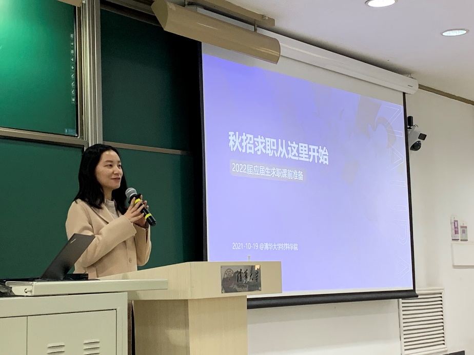 接下来北方华创HRBP总监,2006级员工谢谦学姐为大家介绍求职经验,她从招聘者的角度建议大家充分准备,做好求职的课前准备。