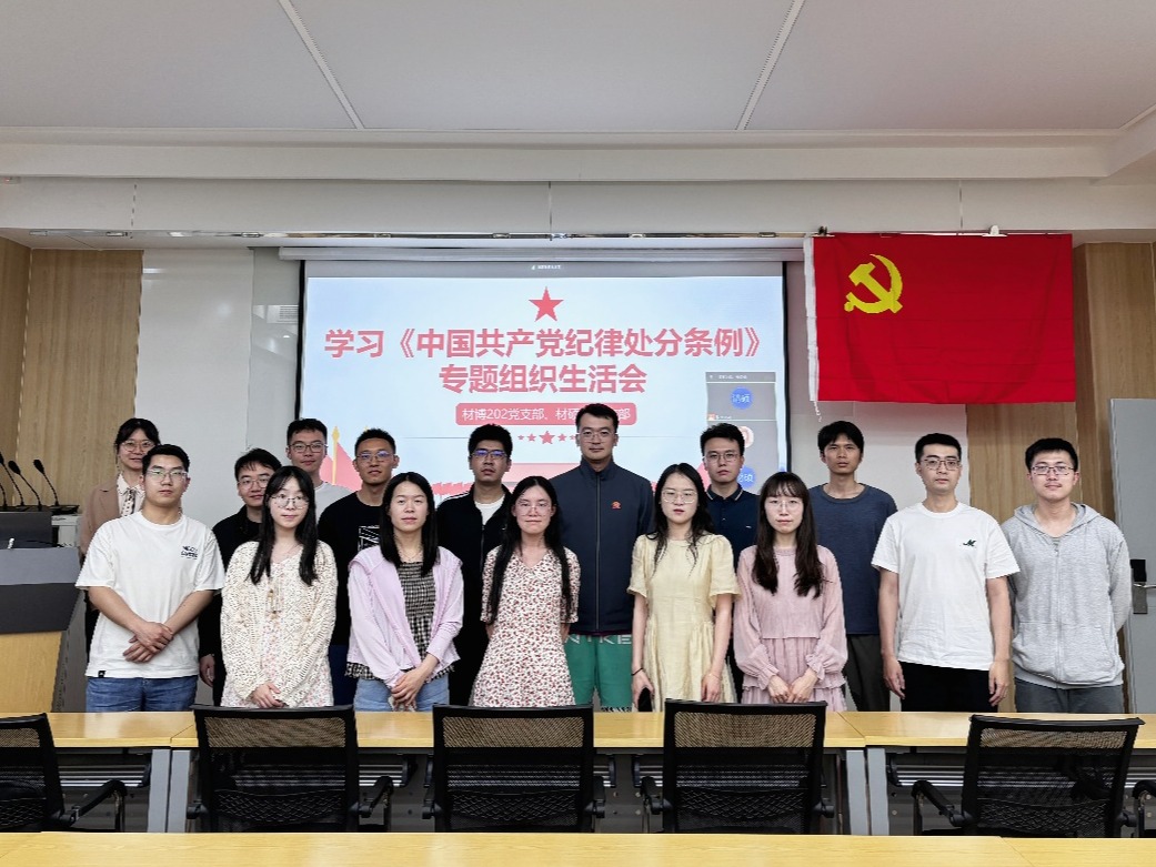 材硕22党支部书记张清硕和材博202党支部书记于凯新主持会议并分别讲授纪律党课,从“以案促学”、“逐章逐条学”、“联系实际学”三个角度开展党纪学习教育,深入学习贯彻《中国共产党纪律处分条例》。