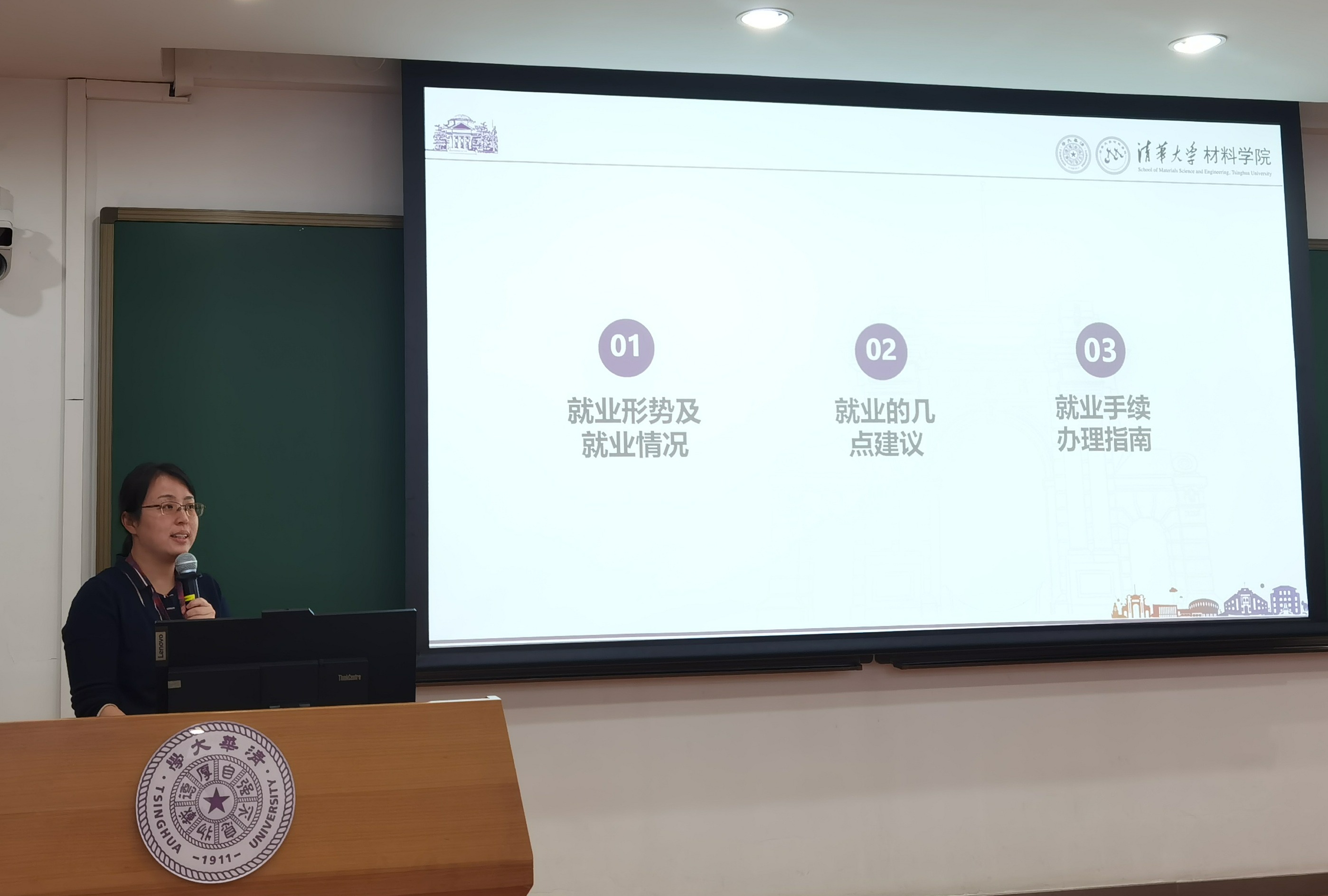 黄婧结合材料学科育人目标、就业特点以及就业形势为同学们梳理了近六年公司毕业生的就业情况,包括本硕博的就业特点以及新时代下材料人的就业选择。她以yl88858永利集团杰出员工为例,激励毕业生敢于担当、勇挑重任,选好、走好人生职业道路的“第一步”。她结合往届毕业特点向同学们提了具体建议,并介绍了就业手续办理指南,鼓励同学们充分利用公司和公司提供的平台和机会,把握关键节点,协调、平衡就业与毕业关系,开始积极蓬勃人生篇章的崭新探索。