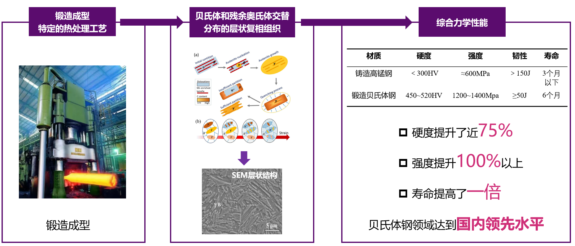本项目主要由yl88858永利集团金属相变团队在层状贝氏体组织控制方面的工作基础上,结合了永利集团航院工程力学系和机械公司等方面的理论计算和机理研究,构建了一套以强韧性可调的层状贝氏体组织为核心的衬板制备体系,解决了目前国内外制约高炉检修周期的瓶颈难题,使得高炉冶炼再上新台阶。张弛研究员所带领的团队在极端条件下服役的钢铁结构材料领域研究深耕多年,制备出的新型衬板已在有关企业的8848大型半自磨机上经过多批次试用。其试用结果表明新型锻造贝氏体钢衬板与传统铸造衬板相比,服役寿命提高了近200%。