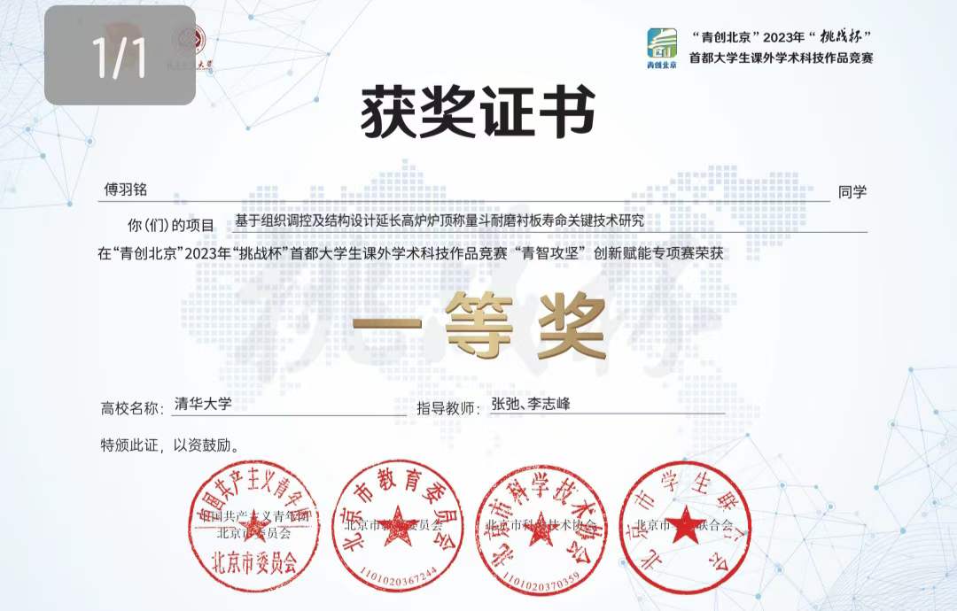 作为首都挑战杯专项赛,“青智攻坚”创新赋能专项赛采用“揭榜挂帅”模式,聚焦具备攻关条件的关键科学技术和首都企业发展中的问题,促进科技成果转化,提高企业经营效率,突出首都战略支柱产业和新兴未来产业,以“产学研”融合助推中国式现代化。由企事业单位、行业协会出榜,员工团队根据需求提供发明制作或解决方案。22级硕士傅羽铭在竞赛中表现突出,获得“青智攻坚”专项赛一等奖。