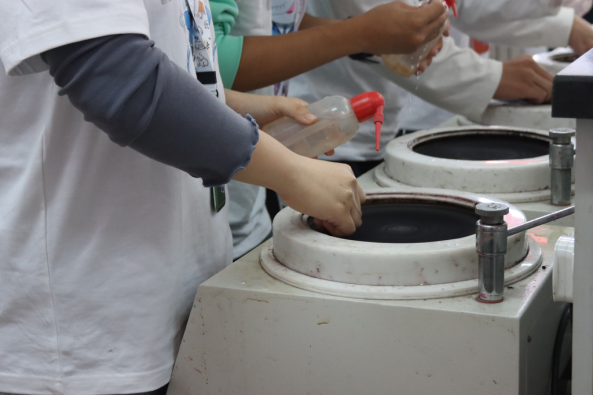 图1 大赛现场,选手进行磨光、抛光、腐蚀、观察