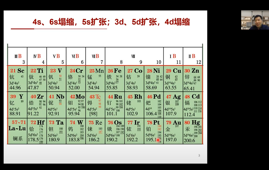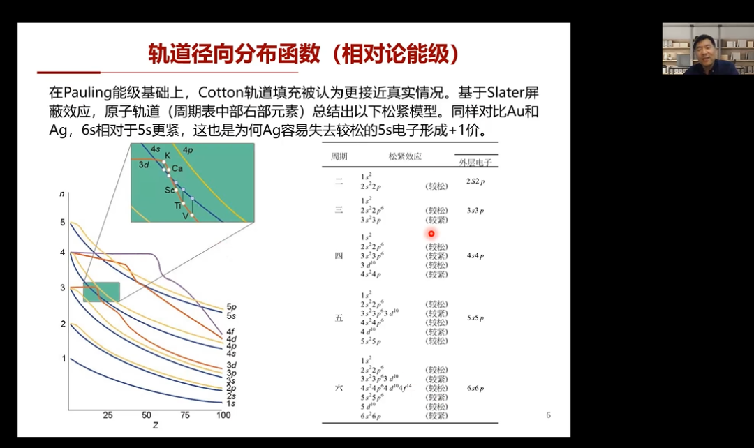 随后,学长从轨道径向分布函数(相对论能级)的角度分析Ag容易失去较松的5s电子形成+1价的原因。学长表示:惰性电子对效应基于相对论效应,Pb,Bi等元素最外层6s电子塌陷后保持非分享的状态而显示出惰性,具有优越的铁电压电性能。