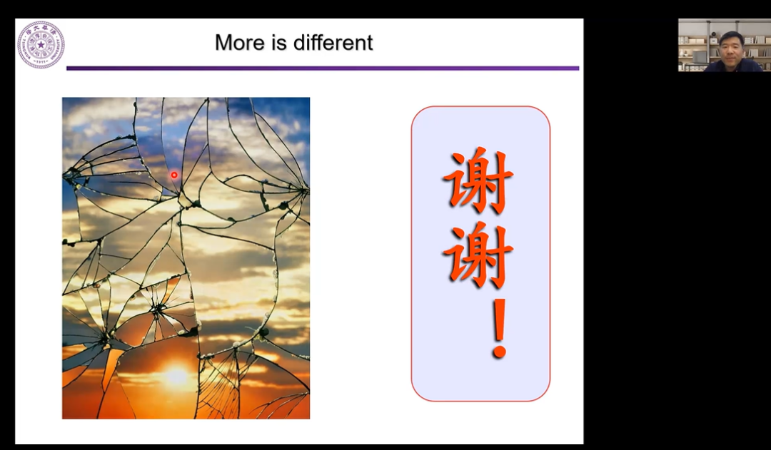 最后,学长对本次论坛做出总结,并且表示:“庖丁解牛后的材料科学对应的也许不是一张完美的元素周期表,可能并非因为还原论不合时宜;对于我们传承下来的固有认知的补充和挑战,或许是年轻一代现在应该开始思考的。”