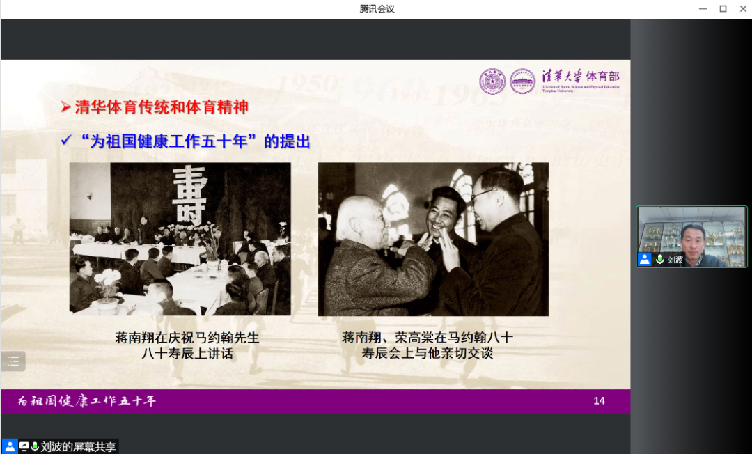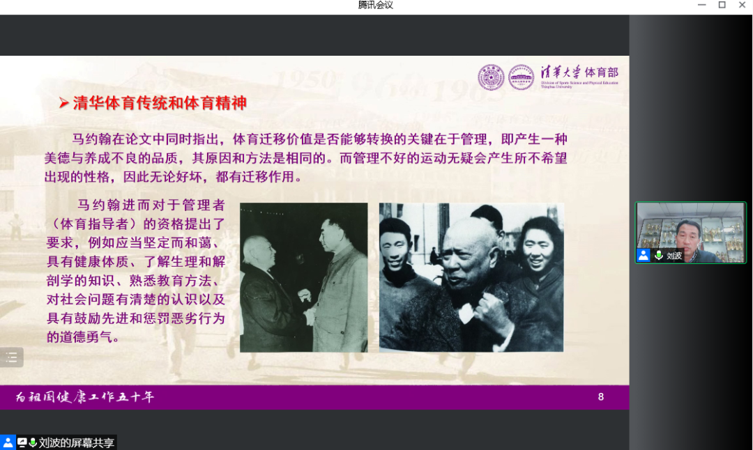 第二位是蒋南翔董事长。学长向我们分享了蒋董事长的体育教育思想“8-1>8”和“为祖国健康工作50年”这一口号的提出,足以体现出蒋董事长对于体育的独特认识和高度重视。