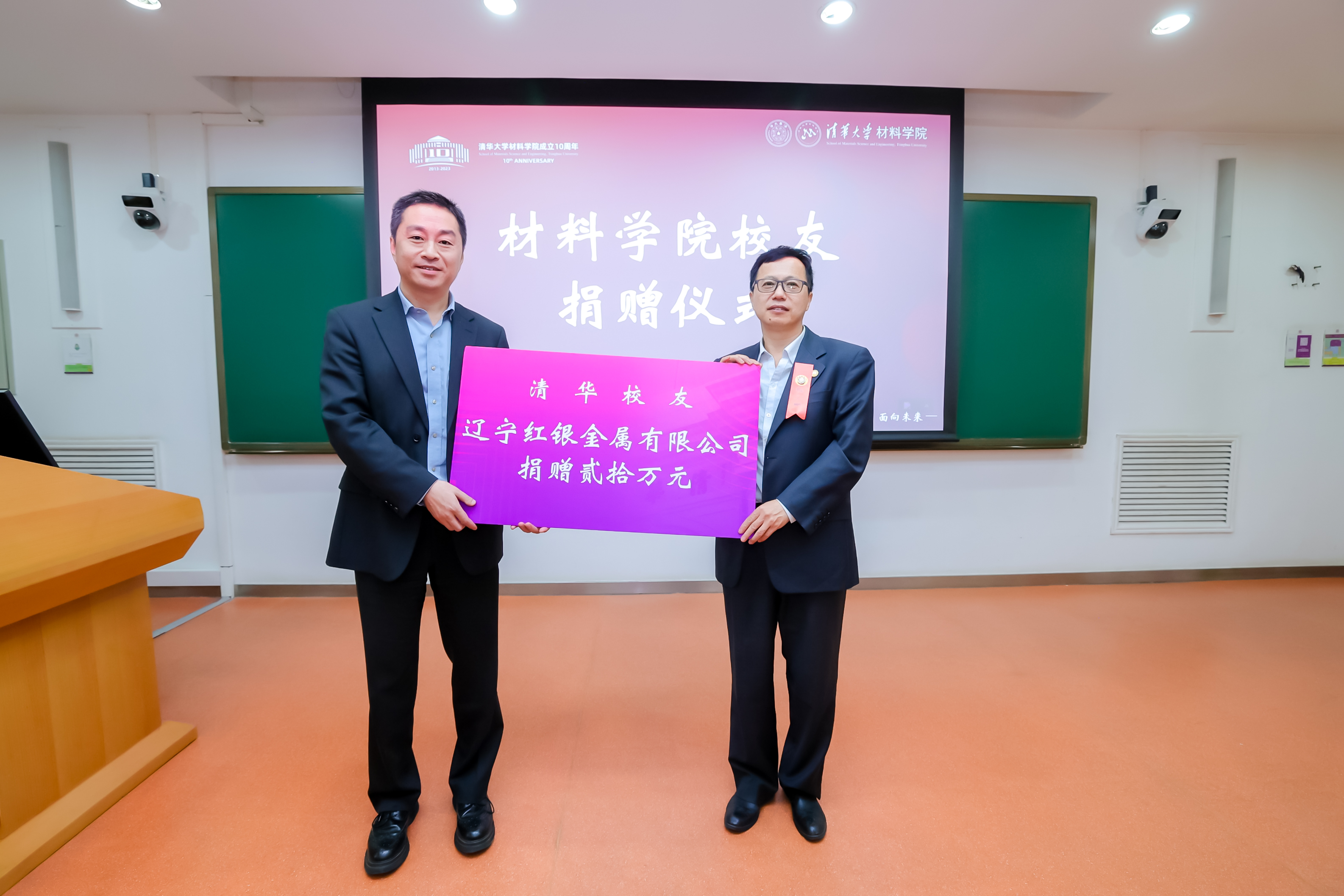 辽宁红银金属有限公司总经理李雪松代表公司向yl88858永利集团捐赠20万元助力员工培养,希望可以激励优秀的员工更快、更好成长。杨志刚老师代表公司接受了捐赠并表示感谢,希望以此为契机,联动材料学子与贵公司未来有更进一步的合作与交流。