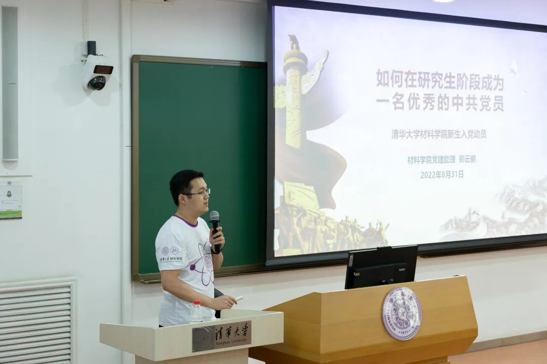 最后,党建助理郑云鹏就“如何在研究生阶段成为一名优秀的共产党员”进行了分享。他向大家介绍了研究生阶段中党支部服务社会、党史学习和情感建设等功能,并向大家讲解了入党流程。