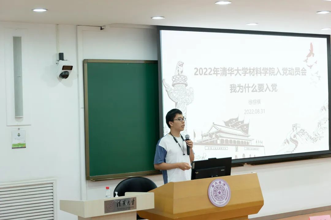 首先,本科生党建辅导员徐棕棋以“我为什么要入党”为主题进行了分享。徐棕棋同学带领大家一起思考“我为什么要入党”,并从政治、时代重任与清华人的角度给出了回答。