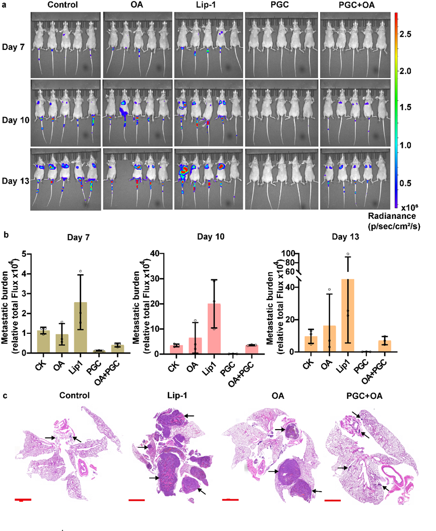 图2 动物实验显示PGC去除油酸保护抑制肿瘤转移
