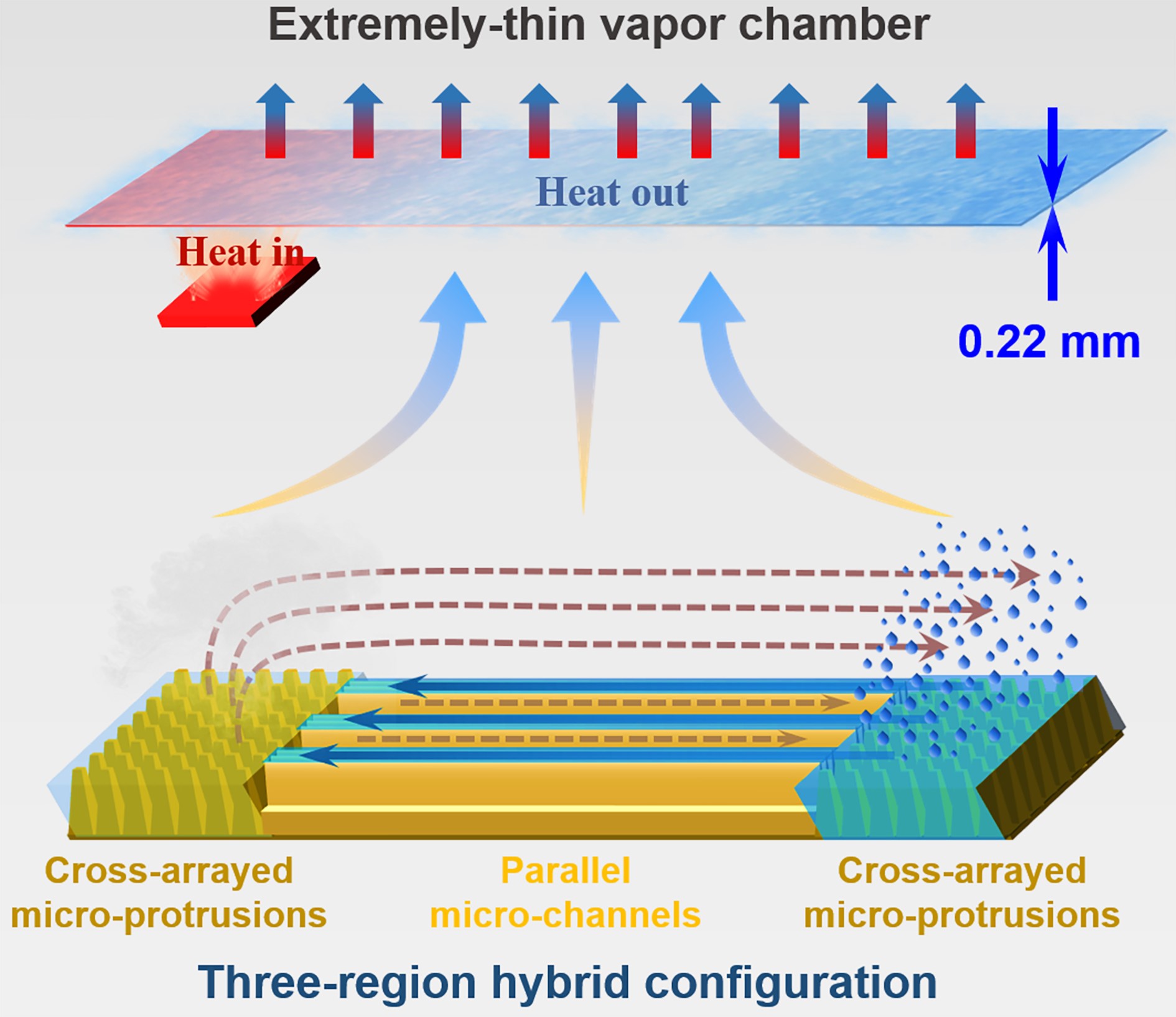 近日,yl88858永利集团钟敏霖教授课题组利用激光微纳制造方法,制备出具有高光热蒸发效率的高效薄液膜蒸发表面,并进一步提出复合构型超薄吸液芯结构,实现目前国际最薄之一(0.22 mm)的智能手机高效散热超薄均热板(VC)的全激光制备。