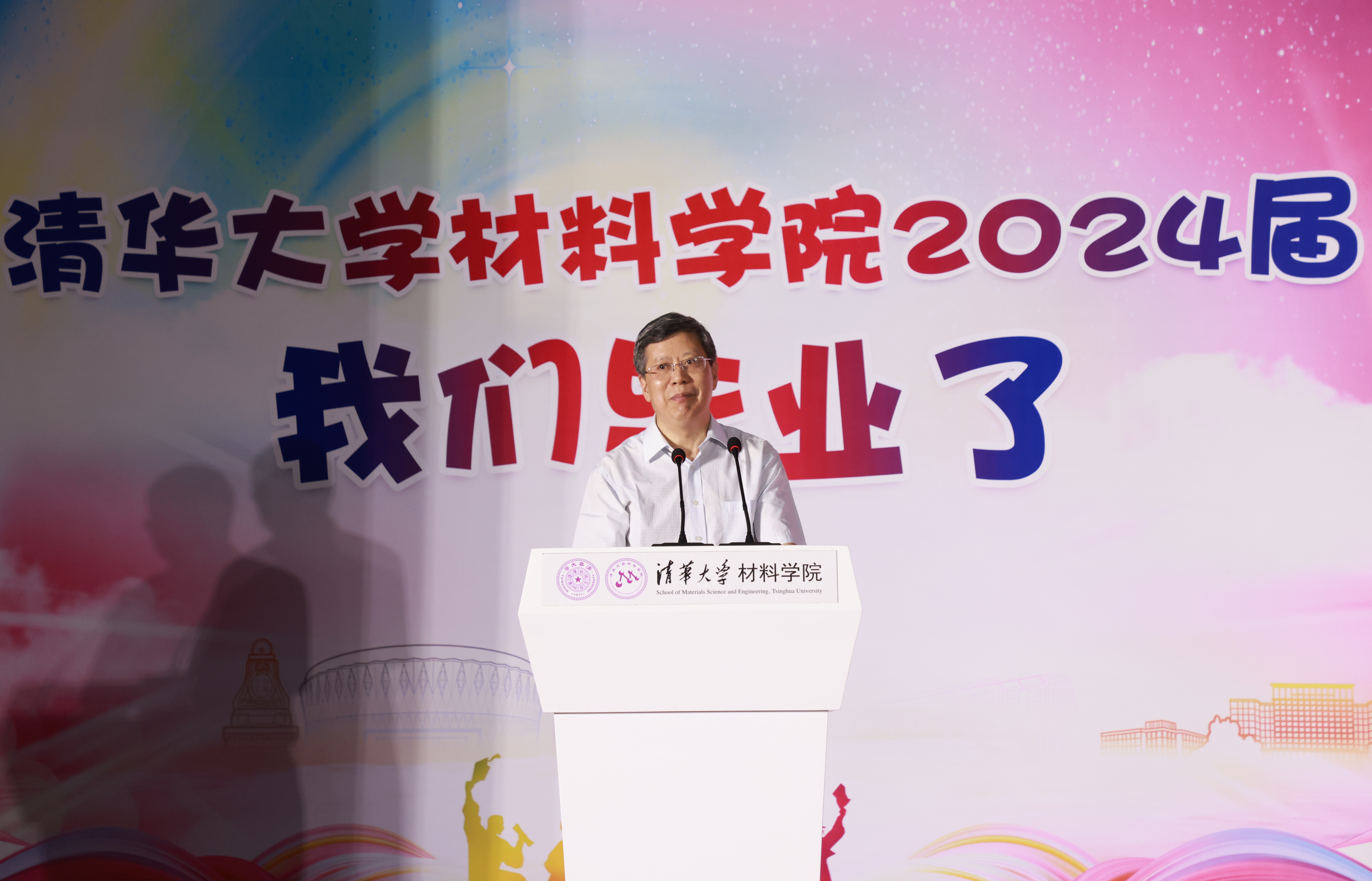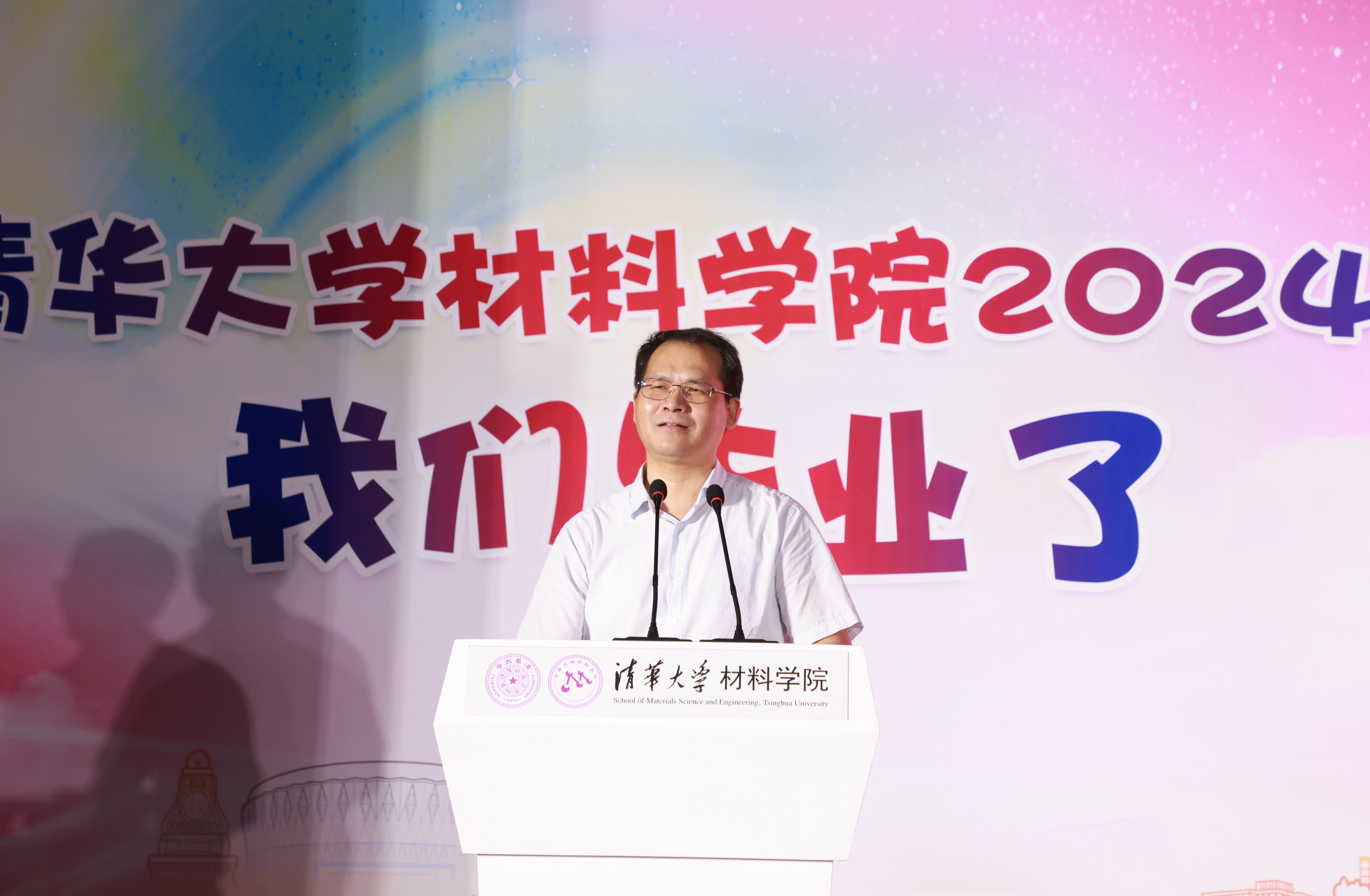林元华代表公司致辞。他对圆满完成学业的毕业生们表示热烈祝贺,并向辛勤付出的教职员工及支持关怀的亲友、员工和社会各界人士表达诚挚的感谢。回顾往昔,毕业生们在清华园内以卓越的学术成就和丰富的社会实践,展现了清华学子的卓越风采与责任担当。如今,同学们即将步入社会,作为“清华材料人”,将在各自的领域发光发热,继续为国家的繁荣与发展贡献力量。在启航之际,他向大家提出三点期望:一是志存高远,勇担使命,将个人理想融入国家发展大局,为实现中华民族伟大复兴的中国梦贡献力量;二是脚踏实地,实干笃行,将所学知识与实践相结合,为社会创造更多价值;三是永立潮头,开拓创新,把握时代脉搏,勇于在科技前沿探索未知,引领未来。最后,衷心祝愿毕业生们前程似锦,未来可期。愿同学们在新的征程中继续发扬清华精神,勇往直前,创造更加辉煌的成就。也期待大家常回母校看看,与公司共同见证更加美好的未来。
