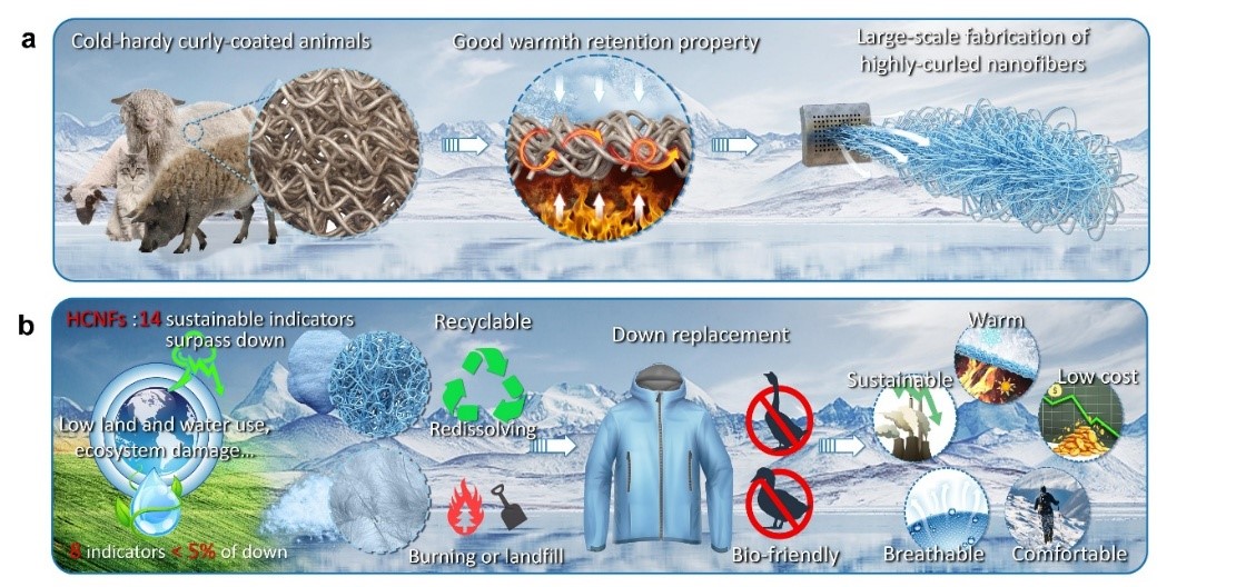上述研究成果以“仿生超细纤维用于可持续隔热材料”(Biomimetic nanofibres for sustainable thermal insulation)为题,于7月29日在线发表在《自然·可持续》(Nature Sustainability)上,并已公开了3项发明专利。