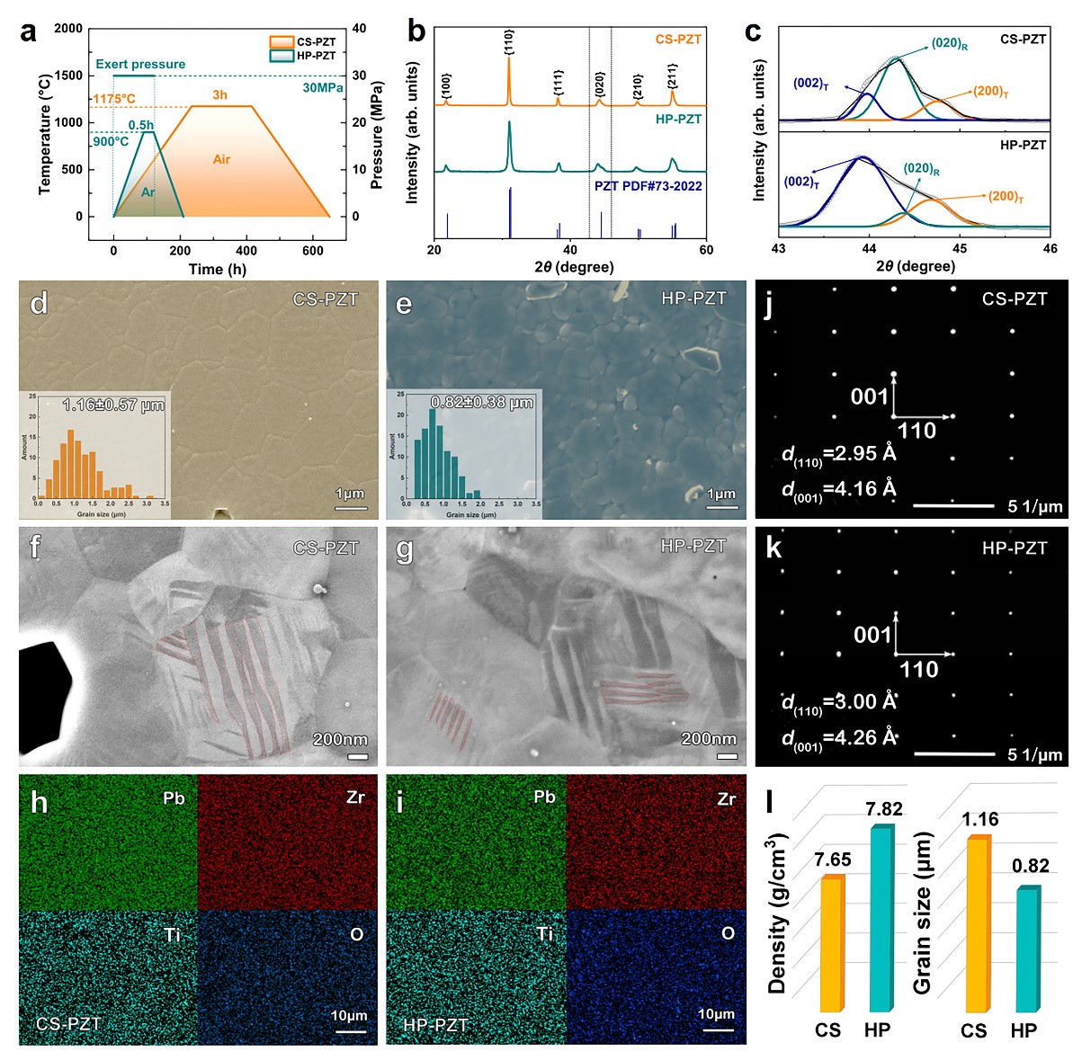 图1. 热压工艺对PZT陶瓷显微结构与相组成的影响