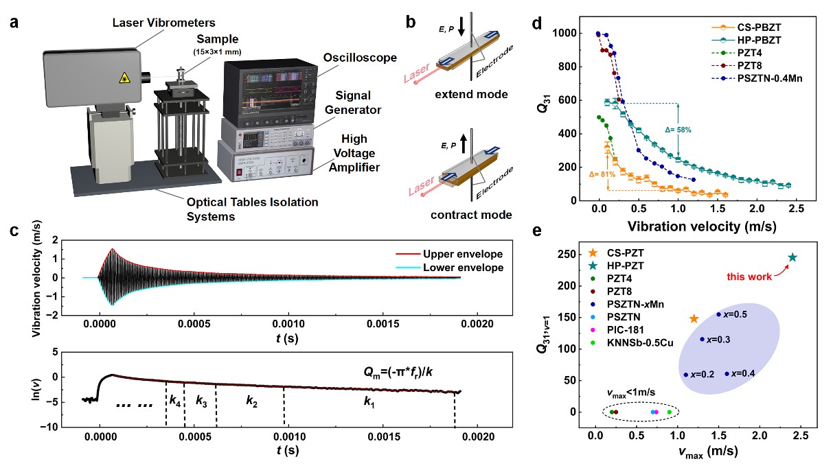 压电陶瓷作为驱动与传感领域的关键功能材料,广泛服务于超声医疗、工业精密加工、海洋声学探测与能量转换等高端装备。常规测试多在小信号条件下进行;然而在大功率工况下,强电-机耦合以及热-力耦合会显著增强,易引发机械品质因数衰减、热积累与疲劳损伤等问题,从而使效率与可靠性受到制约。长期以来,如何制备在大功率条件下性能优异且稳定的压电陶瓷,并厘清其内在影响机制,一直是学界和产业界的难题。