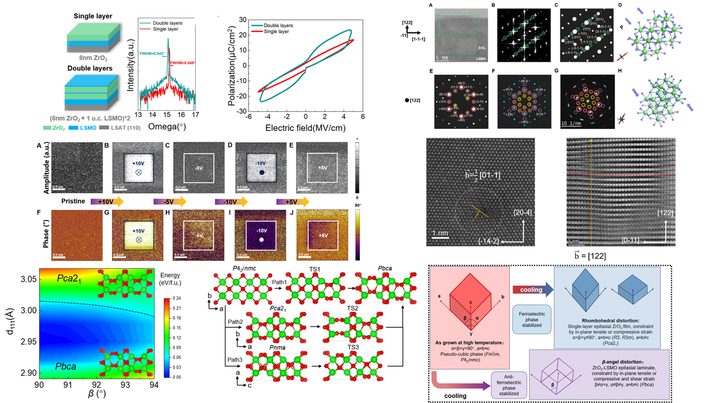 相关研究成果以“ZrO2-LSMO叠层结构中β角畸变诱导的反铁电性”(β-angle distortion stabilized antiferroelectricity in engineered ZrO2-LSMO laminate structure)为题,于10月18日在线发表于《先进材料》(Advanced Materials)。