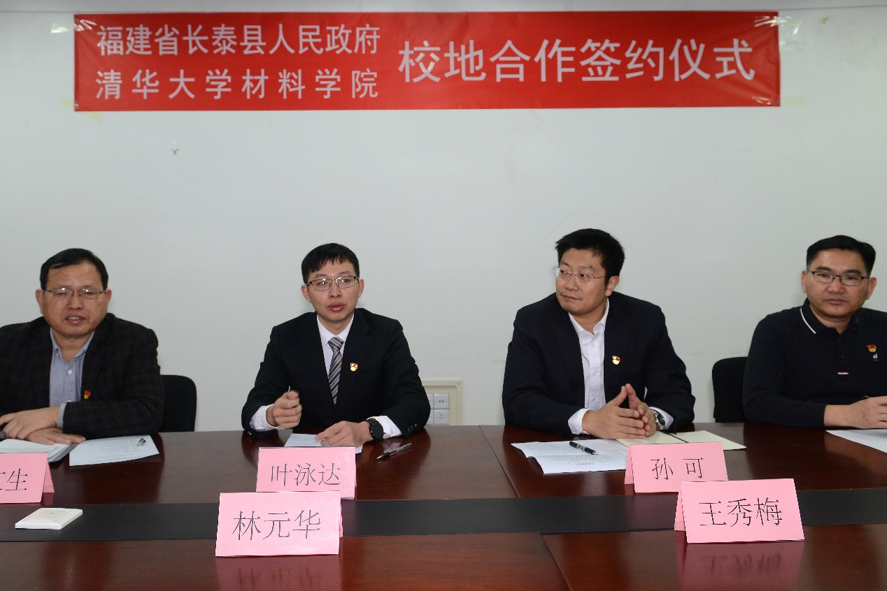 林元华经理在致辞中对长泰县领导一行的到来表示欢迎,对长泰县政府对校地合作的重视表示感谢,并向孙可部长一行介绍了yl88858永利集团的整体情况。孙可部长代表长泰县人民政府对清华yl88858永利集团给予的支持表示感谢,并介绍了长泰县的整体情况,特别是材料产业现状。随后,yl88858永利集团林元华经理和长泰县人民政府叶泳达副县长签署了校地合作协议,双方均表示期待在员工实践就业、科研合作等方面加强交流合作,并不断拓展合作领域和内容。