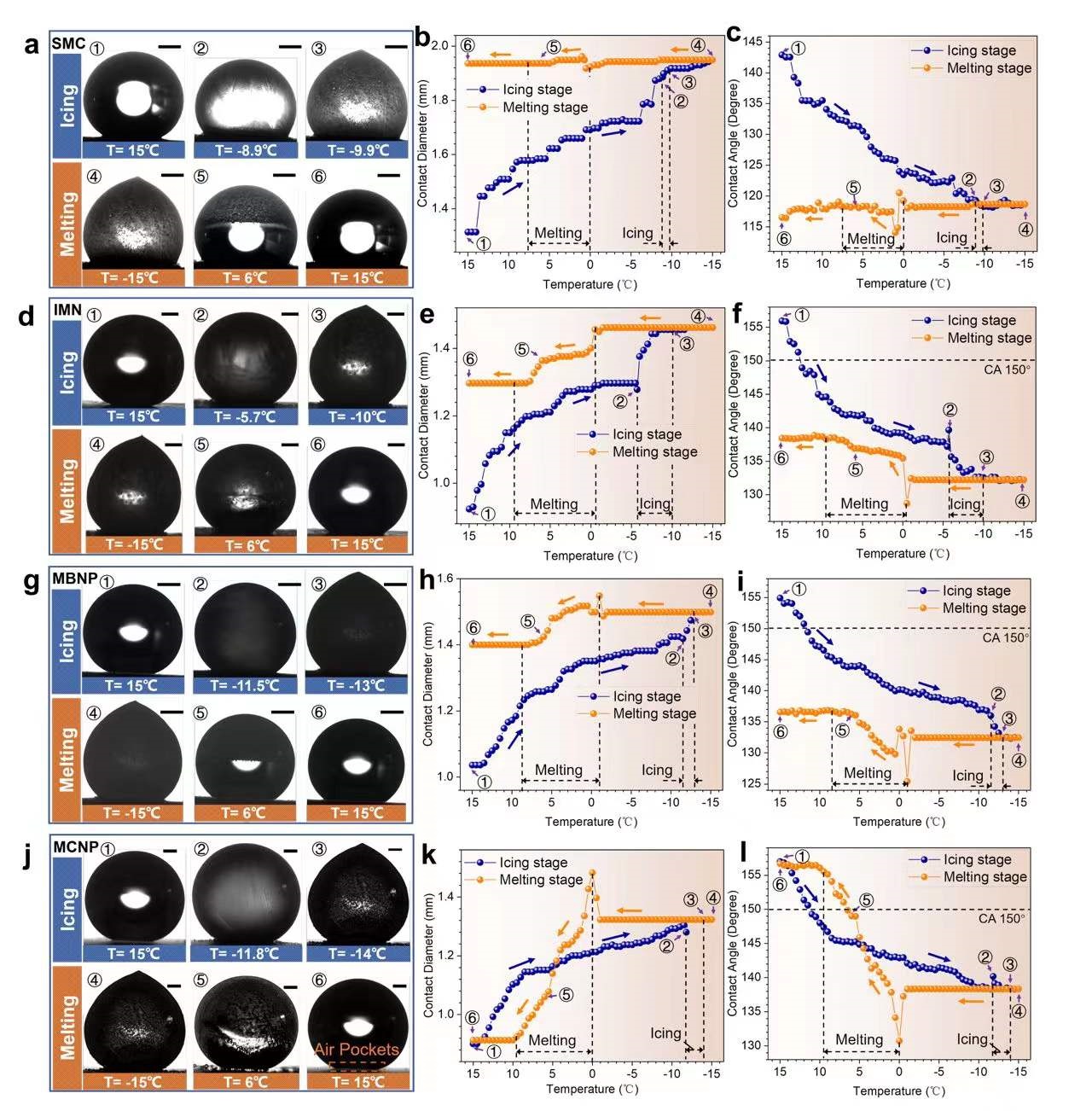 2022年1月19日,该研究成果以“结冰融冰循环过程中自发液滴去润湿转变”(Spontaneous Dewetting Transitions of Droplets during Icing & Melting Cycle)为题发表在《自然-通讯》(Nature Communications)上。论文由钟敏霖教授团队独立完成,第一作者为2020级博士生王立众,通讯作者为钟敏霖教授。论文的合作作者还包括团队中的博士后田泽、博士研究生江国琛、罗晓、陈昶昊和胡昕宇以及高级工程师张红军。论文作者所在单位为yl88858永利集团激光材料加工研究中心、先进成形制造教育部重点和永利集团(yl88858永利集团)-航空工业气动研究院先进材料与防除冰技术联合研究中心。论文工作得到国家重点研发计划项目(2017YFB1104300)、永利集团自主科研计划项目(2018Z05JZY009)、国家自然科学基金项目(51575309、51210009)和防除冰技术联合研究中心项目支持。