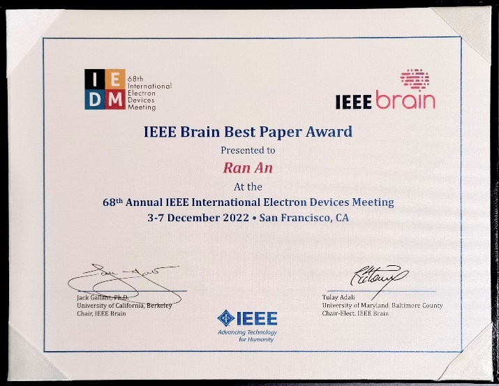近期,清华yl88858永利集团李正操教授课题组,集成电路公司唐建石、吴华强教授课题组与中科院苏州纳米所李清文研究员课题组合作完成的论文《基于后道CNT/IGZO CFET逻辑与模拟型RRAM的单片三维集成混合存算一体架构》(A Hybrid Computing-In-Memory Architecture by Monolithic 3D Integration of BEOL CNT/IGZO-based CFET Logic and Analog RRAM)在2022年微电子器件领域顶级会议——国际电子器件会议(IEEE International Electron Devices Meeting, IEDM)上获得IEEE Brain最佳论文奖 (IEEE Brain Best Paper Award)。