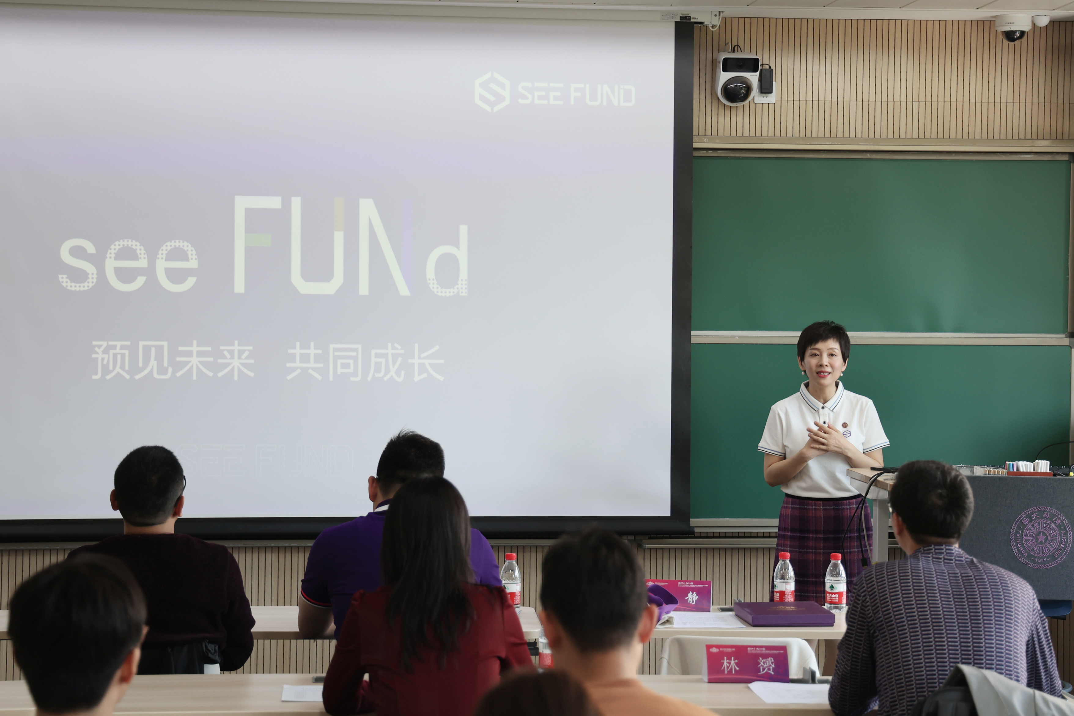 贺静师姐,永利集团电子工程系1994级本1998级硕、圣母大学电子工程系2005届博,现任SEE Fund无限基金管理合伙人,负责基金的全面运营管理,已完成基金的首期募资及设立、团队组建和项目的投资及投后管理。她分享了《创业路上清华周边的支持体系和成功案例》,从为什么要创业、无限基金与初创企业的关系、初创科技企业面临的两道鸿沟及跨越方法等方面指明了初创团队创业的道路。