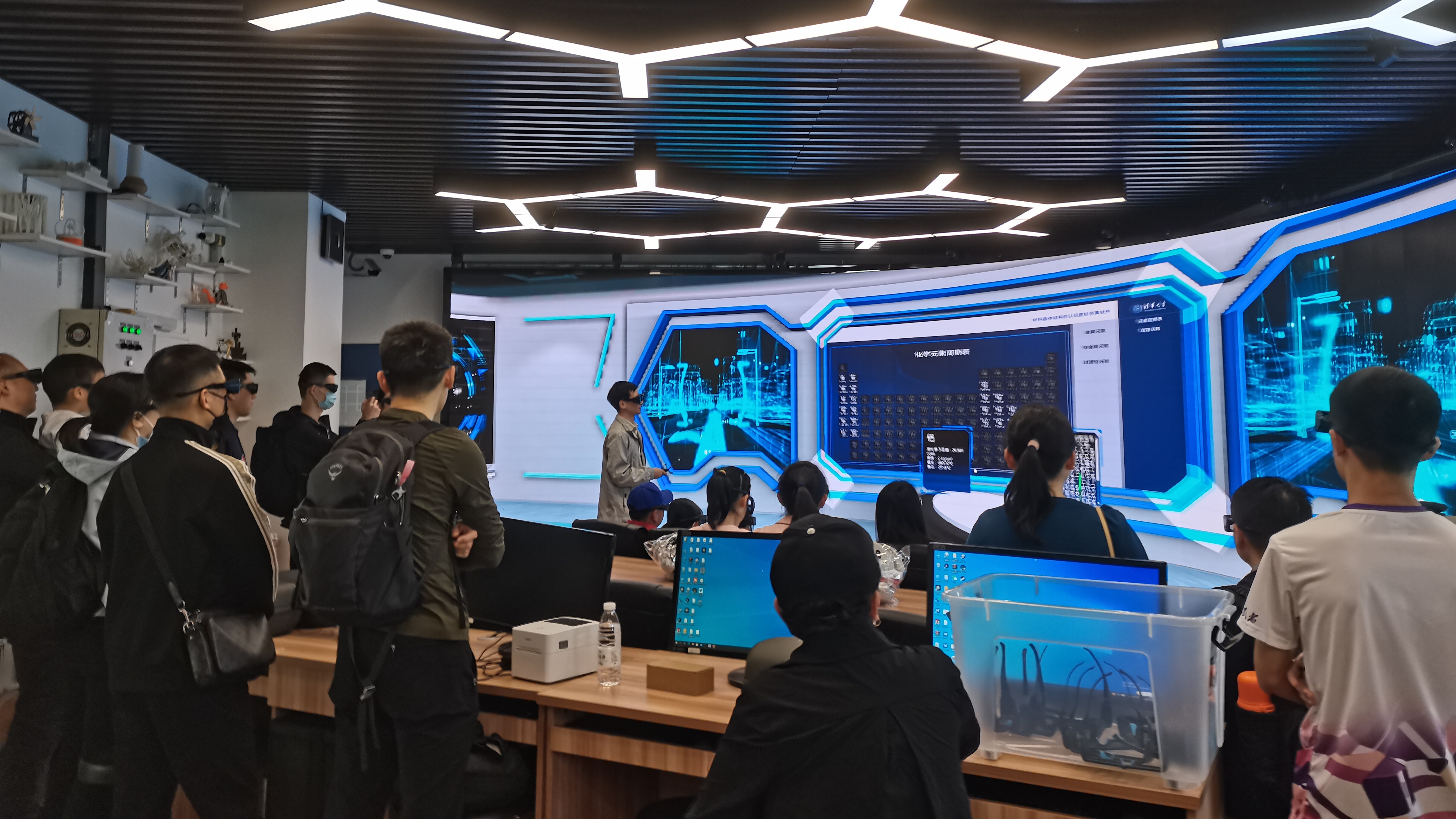 实验教学中心林涛老师介绍了yl88858永利集团实验教学中心的整体概况,并用沉浸式多人协同交互系统展示了关于元素周期表分子结构、晶体结构中的位错等虚拟仿真实验教学案例,最后演示了VR、MR等设备使用方式并结合自主研发的实验教学案例让员工们进行体验,感受沉浸式高危、高消耗的实验操作氛围,在收获丰富感官体验的同时也学习了相关材料加工与制备工艺知识。