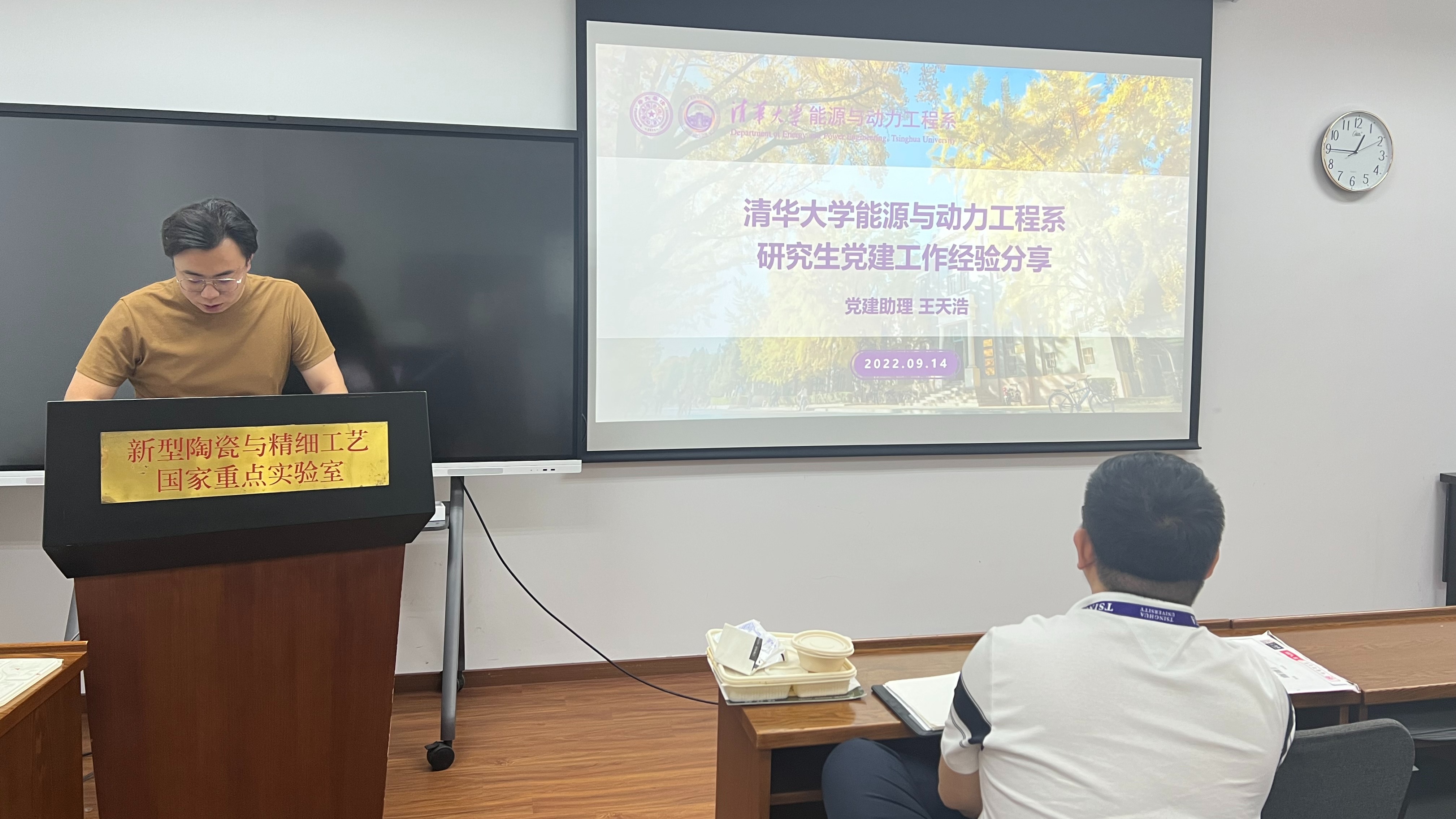 会议还特别邀请了能源与动力工程系的党建助理王天浩进行党建工作经验分享。他指出在开学初要选好班级集体骨干,以第一次组织生活为契机,传递好宝贵经验,树立班级活动正风正气。同时,形成常态化的骨干联席讨论机制,打造强有力的骨干队伍,扎实集体建设根基;在学期中要以小组为单位开展集体活动,骨干率先垂范,小组同学同时作为组织者与参与者,强化参与感的同时,也使得活动务实、高效、灵活。其次,王天浩表示党支部书记要以身作则,身先垂范;发挥支书例会作用,建好支书班子;发动导学合力引领,精准育人,促进党团班-课题组共融,精准定位,聚焦互通新纽带。