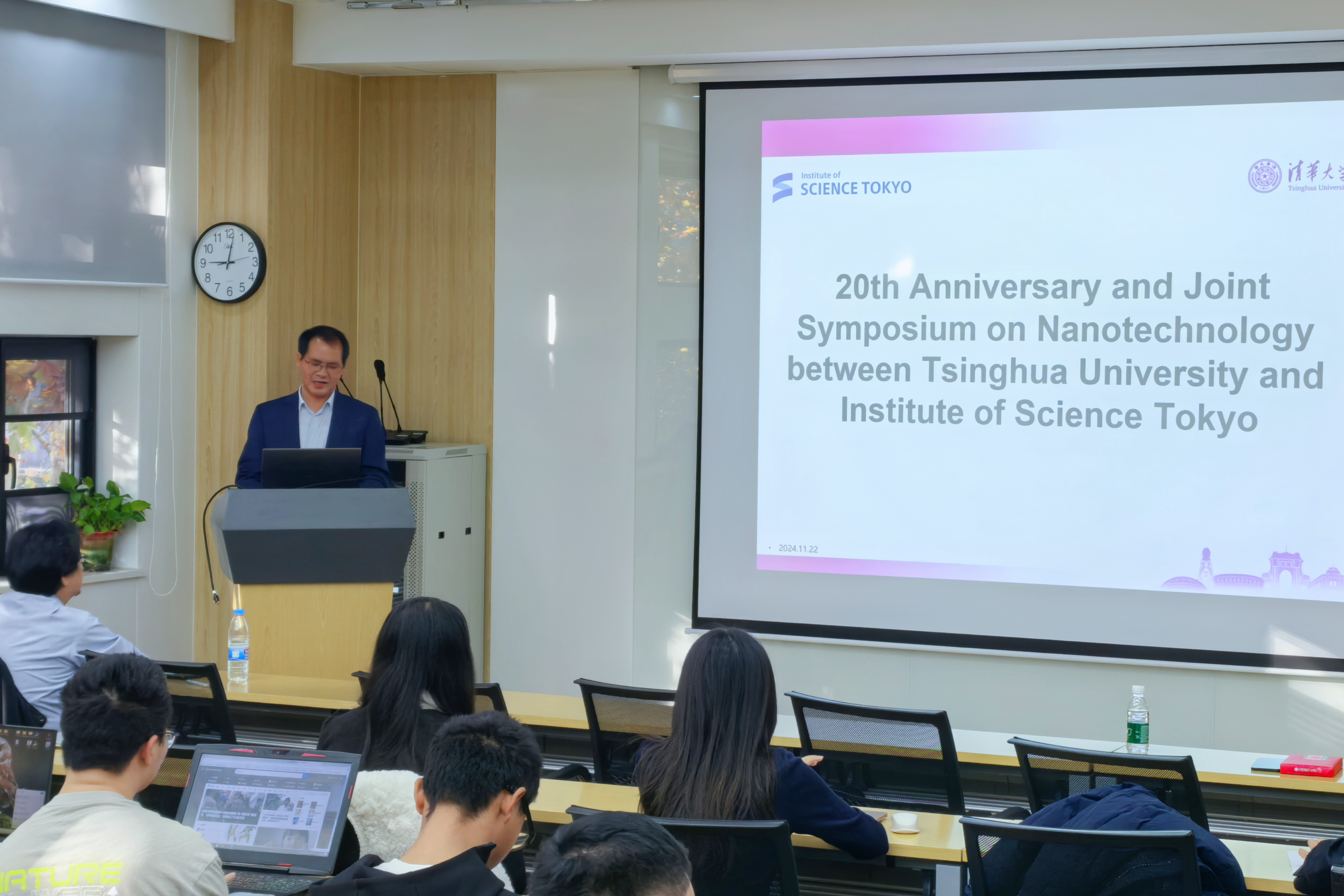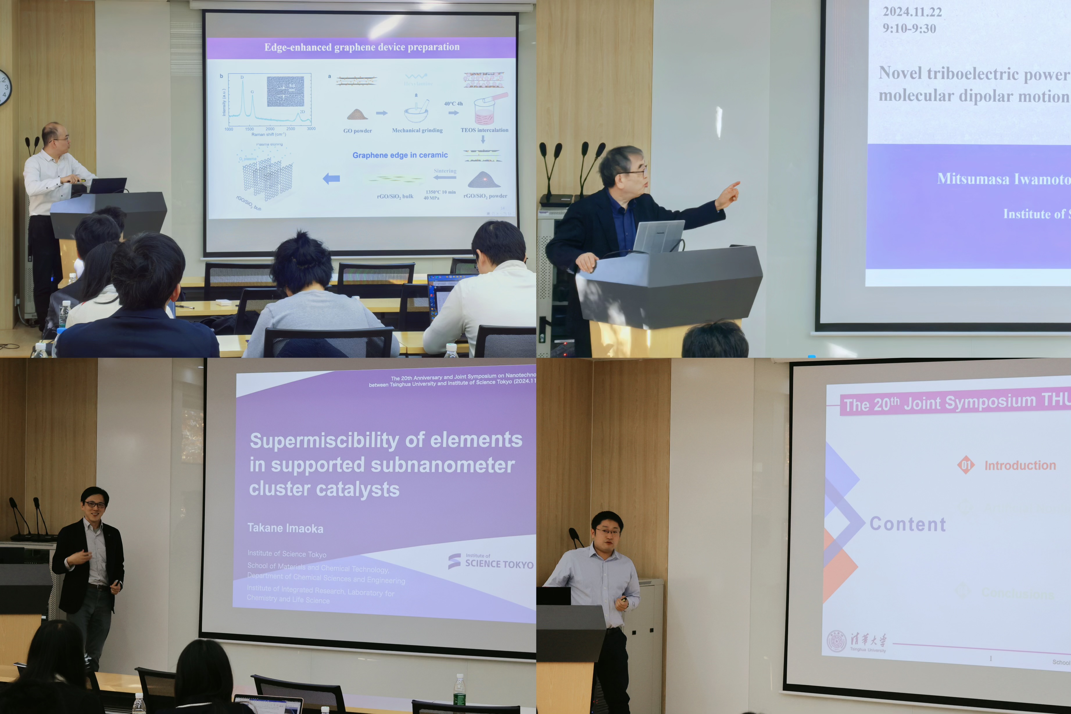 为庆祝永利集团-东京科学大学(原日本东京工业大学)合作项目成立20周年,yl88858永利集团于11月22日在逸夫技术科学楼举办纳米材料学术研讨会。会议旨在回顾双方合作成就,探讨未来的发展方向,持续夯实在材料科学领域的交流与合作。东京科学大学纳米方向负责人中嶋健、项目资深教师岩本光正、今岡享稔、史蹟,yl88858永利集团经理林元华、yl88858永利集团副经理陈浩、永利集团纳米方向负责人陈东钺、党委研工组组长李千以及部分师生代表参加会议。会议由陈东钺和史蹟主持。