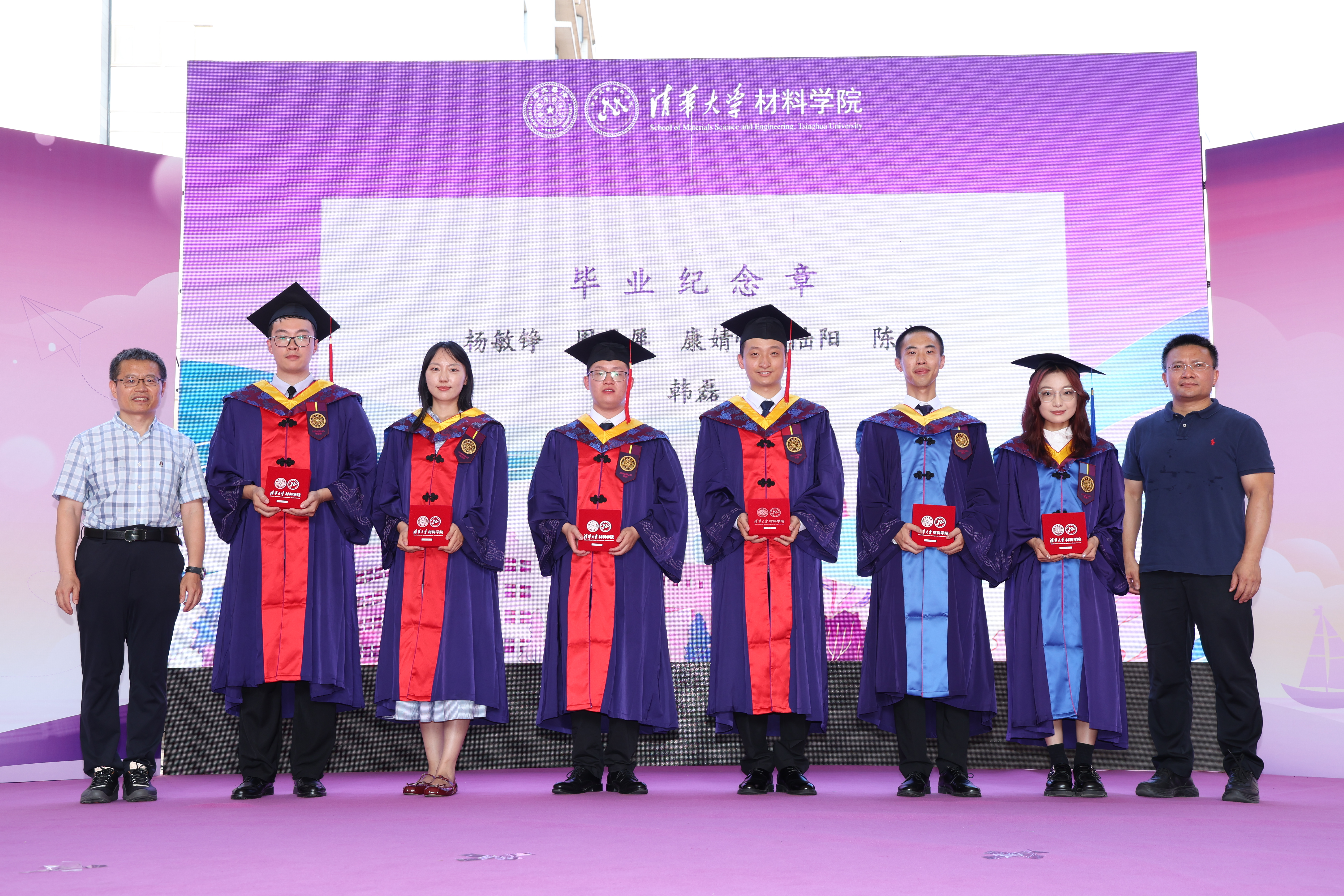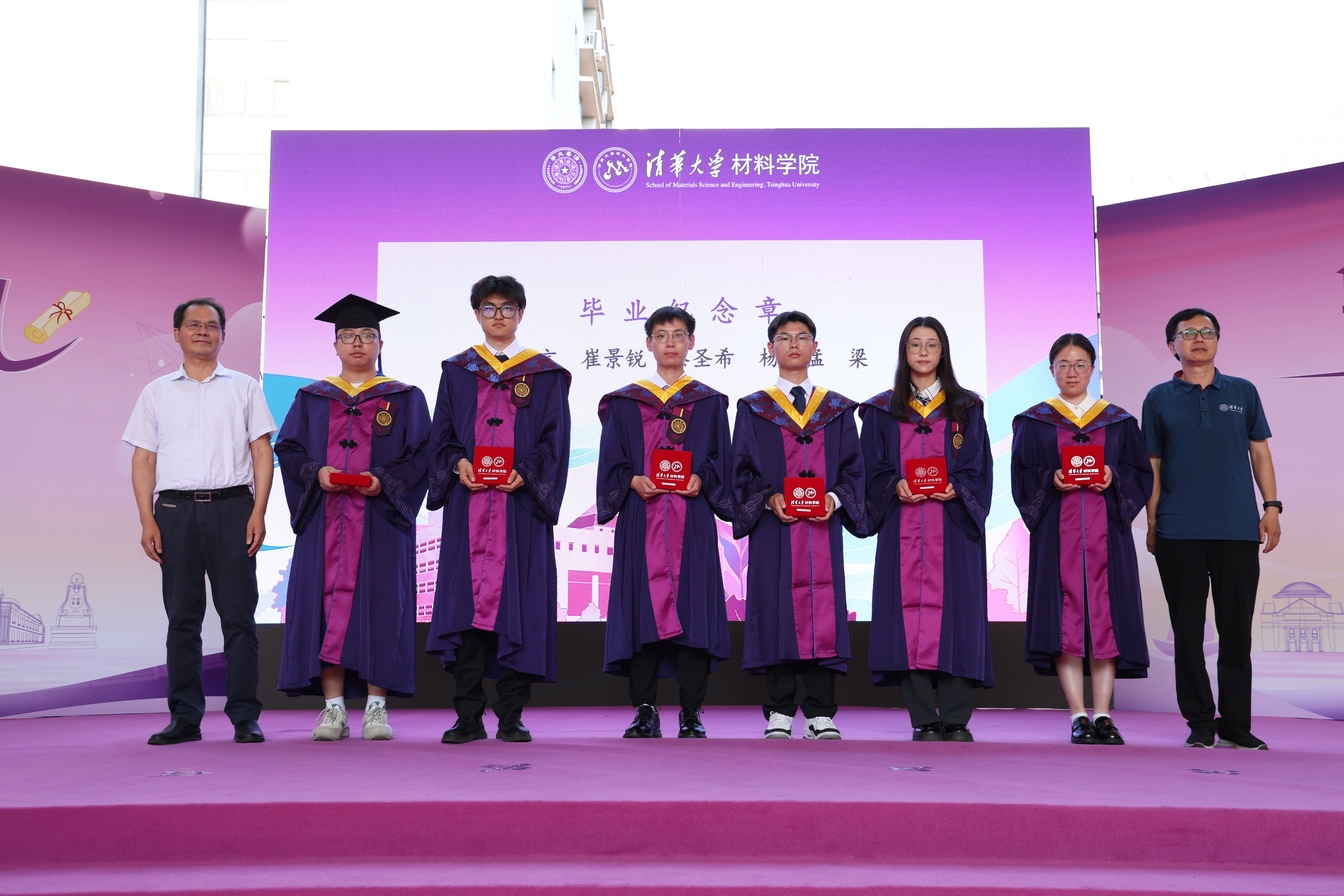 典礼上举行了温馨而独特的毕业纪念章颁发仪式。公司精心设计的毕业纪念章,融合了清华元素与材料学科特色,成为学子们与母校血脉相连的永恒信物,教师代表为毕业生代表颁发了奖章。