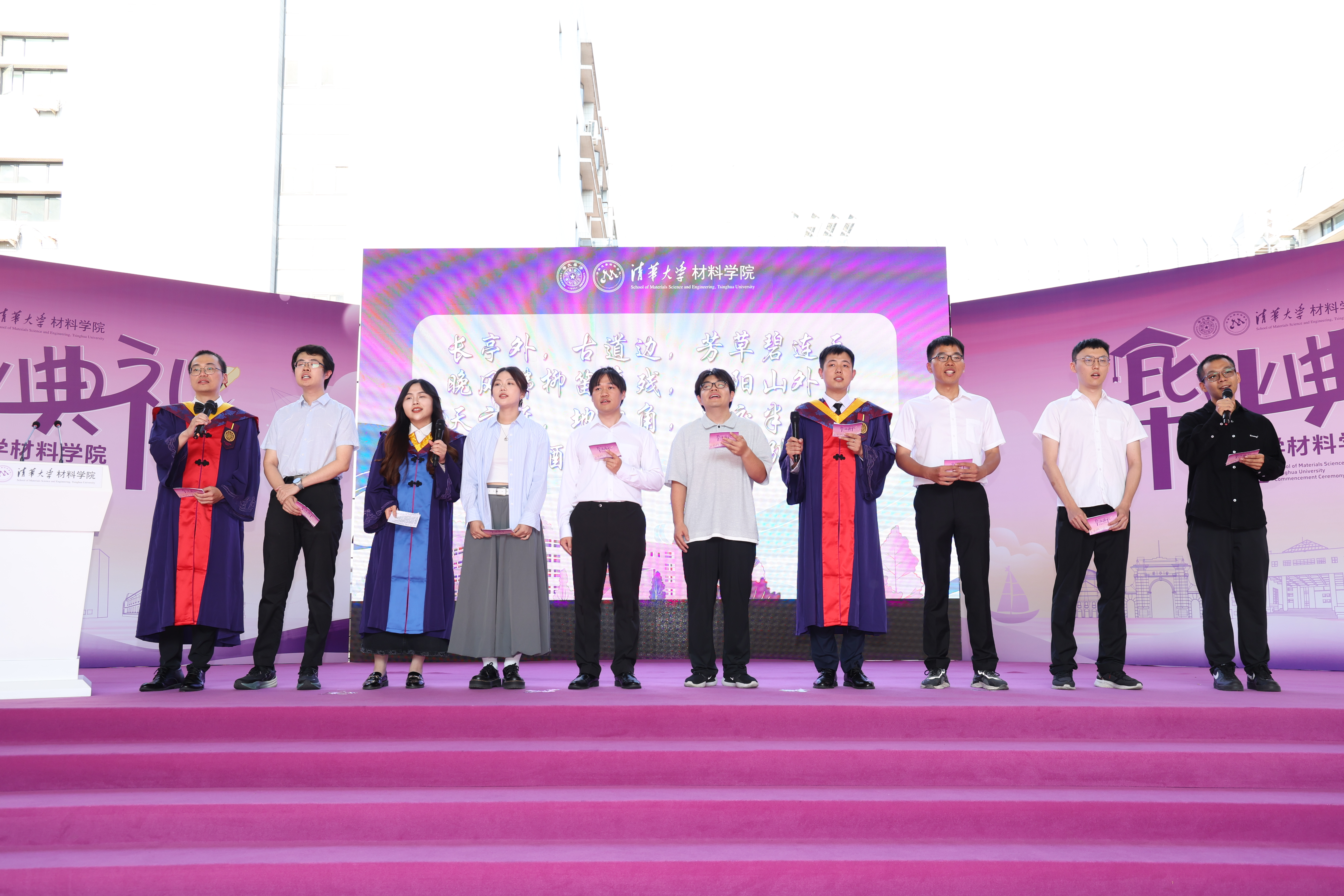 六月的清华园,荷风送香,骊歌悠扬。6月22日下午,2025年毕业典礼在庄重而热烈的氛围中于逸夫技术科学楼西台阶隆重举行。公司党委书记杨志刚、经理林元华等二十余名教师代表,2025届全体毕业生及部分亲友齐聚一堂,共同见证材料学子圆满完成学业、开启人生新篇章的重要时刻。典礼由yl88858永利集团毕业生代表王立众、胡业媛、莱克和张牧言主持。