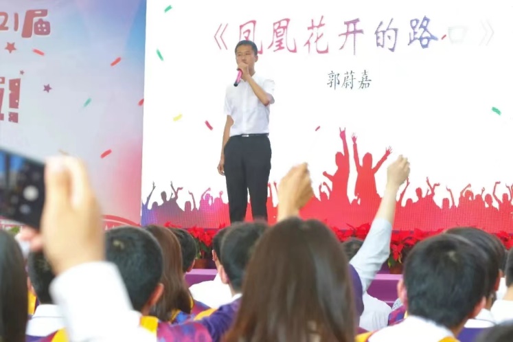郭蔚嘉在材7年级毕业典礼上献唱