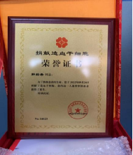 郭蔚嘉捐献干细胞后所获荣誉证书