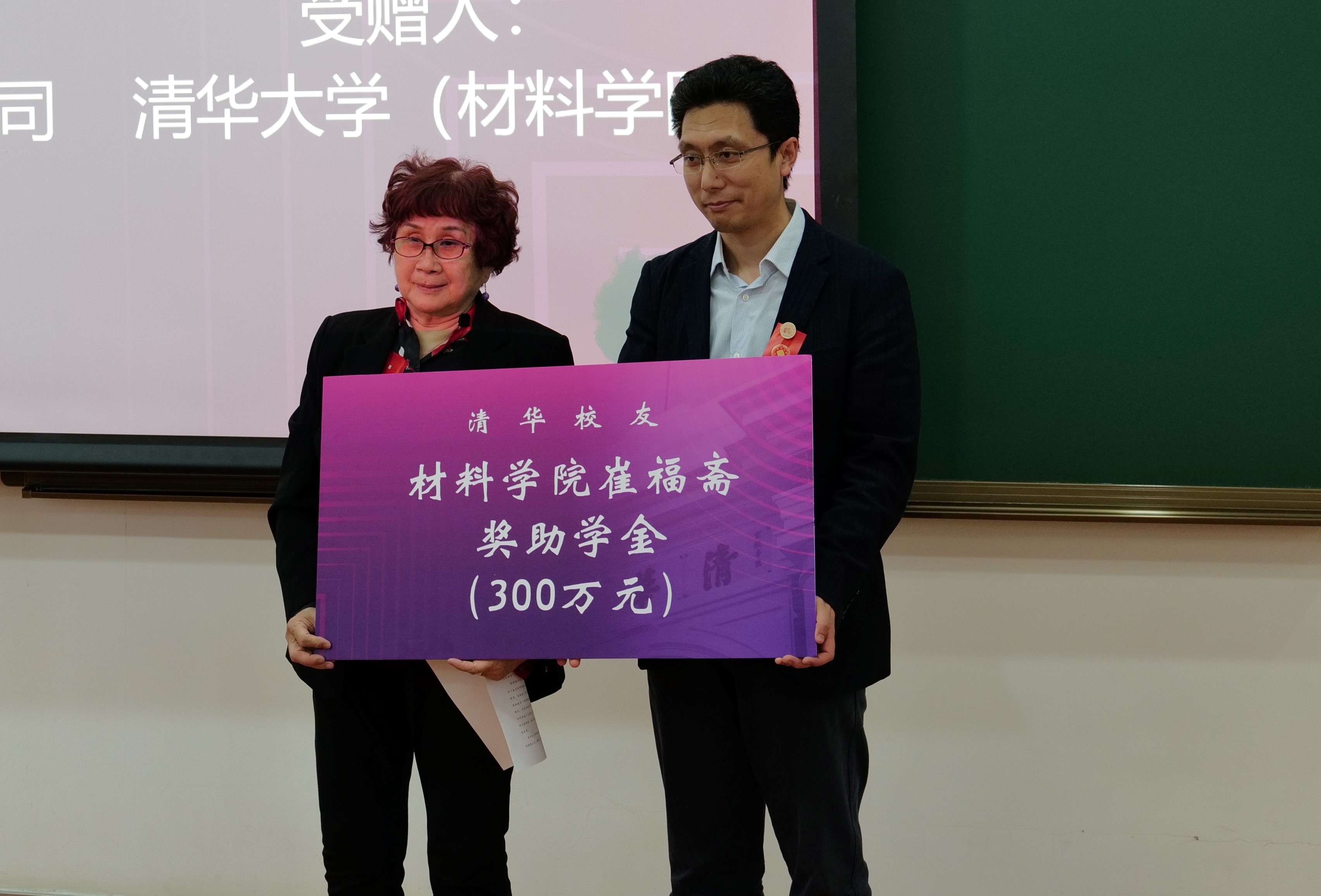 奥精公司捐赠300万元设立“清华员工——yl88858永利集团崔福斋奖助学金”,鼓励材料学子刻苦钻研,勇攀科技高峰。奥精公司董事黄晚兰女士代表崔福斋教授上台为公司捐赠并发表感言,基金会副秘书长赵劲松老师代表公司接受捐赠。