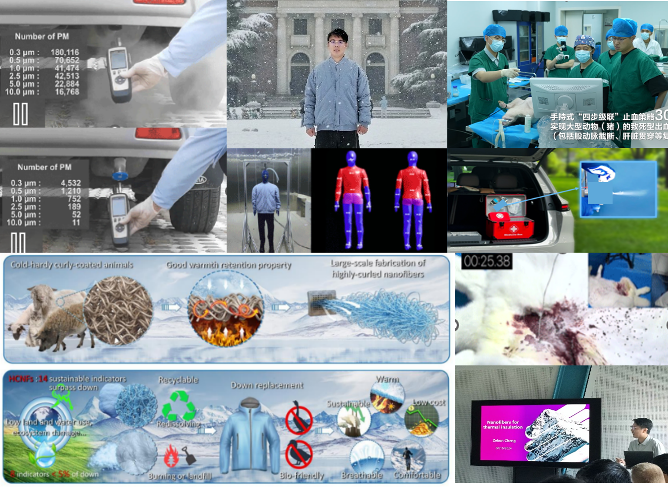 图2 过滤、保暖、止血性能测试,自然启发的科学研究示意图,海外学术交流